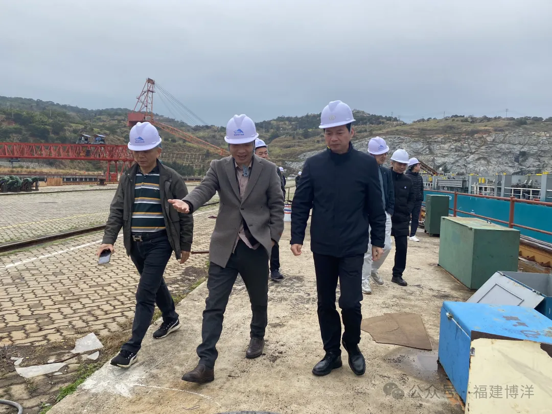3月6日上午,市交通局水運中心曾銳副處長、市工信局曾健科長、泉州船東協(xié)會陳其龍會長一行蒞臨我司考察交流。福建博洋船舶工業(yè)有限公司董事長李振恩攜各部門相關負責人進行了親切接待,并先帶領來訪嘉賓實地觀摩了泉州船廠1#、2#船塢及設備設施、并進行現(xiàn)場講解交流。