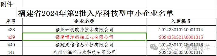 近日,福建博洋船舶工業(yè)有限公司根據(jù)《科技型中小企業(yè)評(píng)價(jià)辦法》的通知要求,積極填報(bào)企業(yè)信息進(jìn)行科技型中小企業(yè)評(píng)價(jià)。經(jīng)省科學(xué)技術(shù)廳審核后,福建博洋順利通過認(rèn)定,成為2024年福建省第二批入庫科技型中小企業(yè)(入庫登記編號(hào):2024350521A0001315)。